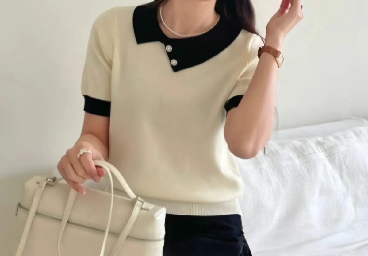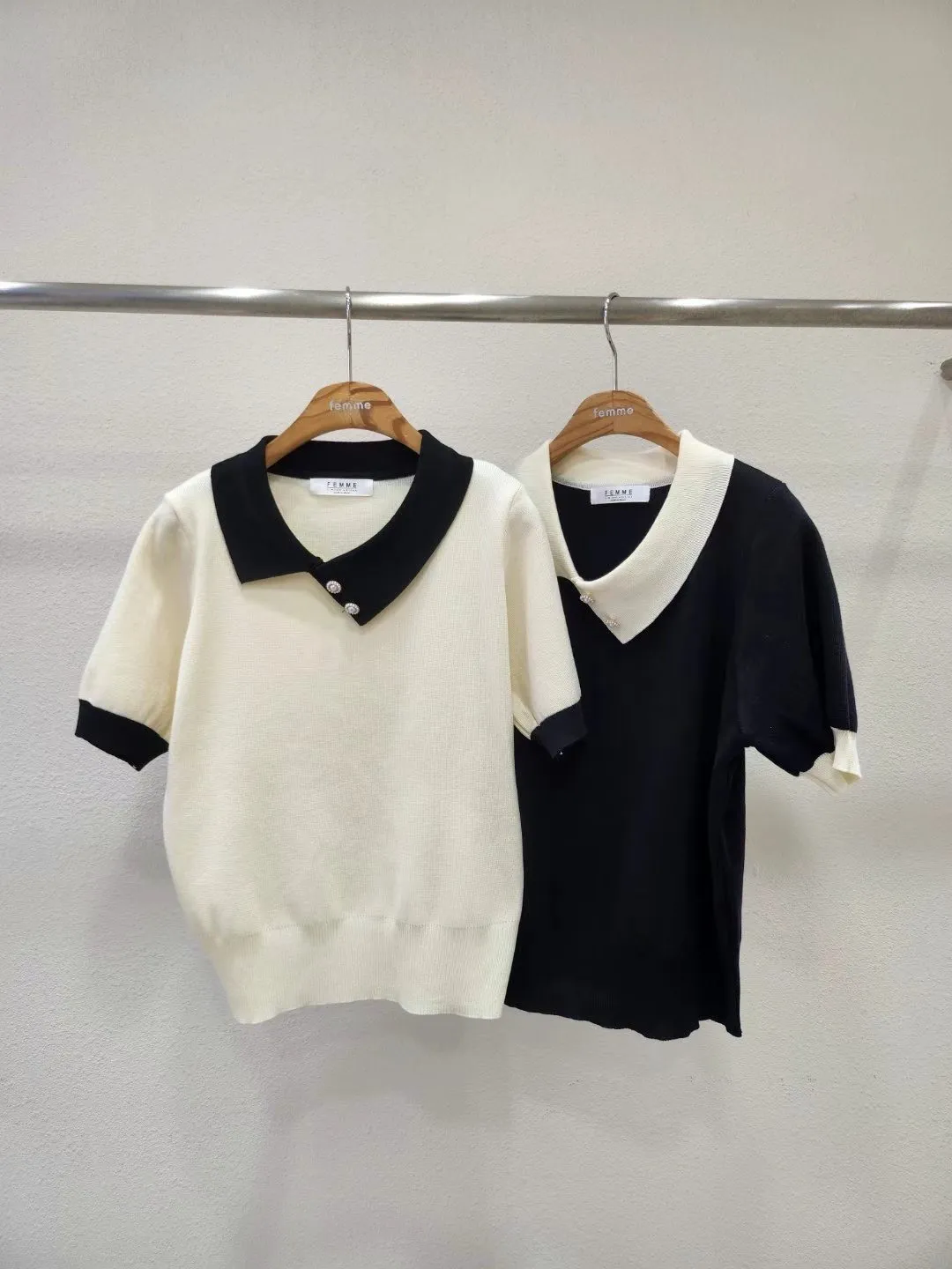 復古又不失俐落感的拼接翻領設計搭配小珍珠排扣點綴細節細緻不單調採用柔軟針織面料舒適服貼修飾身形不貼肉輕鬆穿出日常優雅百搭色系無論搭配牛仔褲或短裙都能輕鬆打造氣質通勤或約會風格&材質:高彈性針織面料(不易皺)&款式:黑配白?白配黑&尺寸:Free size(建議S~L穿著)&穿搭推薦:搭配牛仔褲 窄裙或寬褲皆可